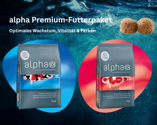 alpha ist das wohl hochwertigste Koifutter welches in Europa hergestellt wird. Geringste Wasserbelastung, ein einfaches Futterkonzept mit nur einem Hauptfutter und gesunden Farbenfrohen Koi. Beliebt bei tausenden Koihaltern seit 2014.