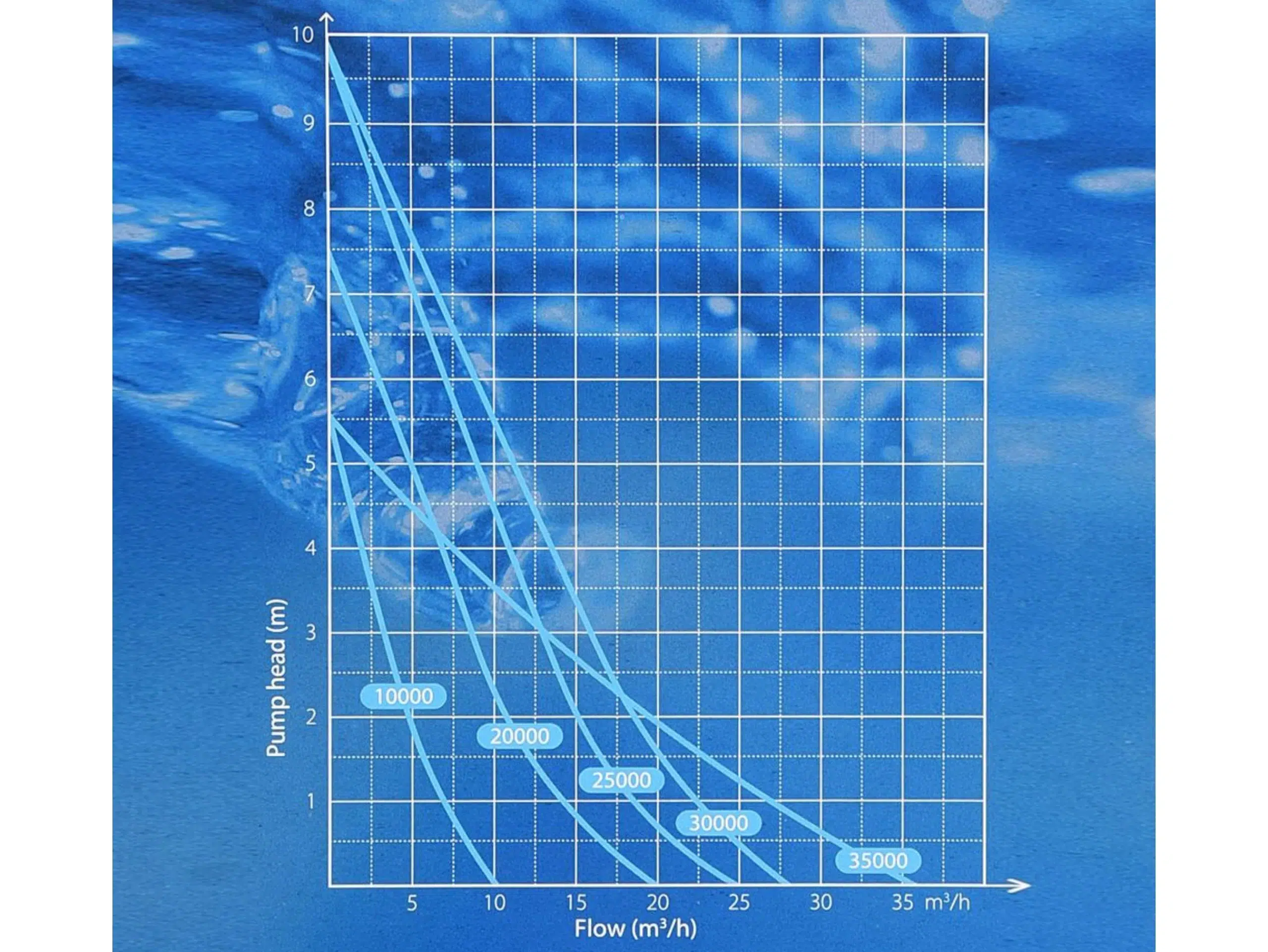| Modell | Var. Leistung l/h | Verbrauch (Watt) | Max. Förderhöhe m | Anschlüße (Ein- & Ausgang) |