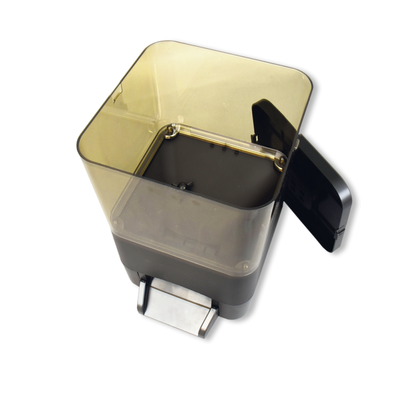 Der Auswurf des Futters über eine sich öffnende Klappe kann bis zu 8x am Tag erfolgen und die Menge ist in 5g Schritten frei einstellbar. Das Fassungsvermögen beträgt 8L.