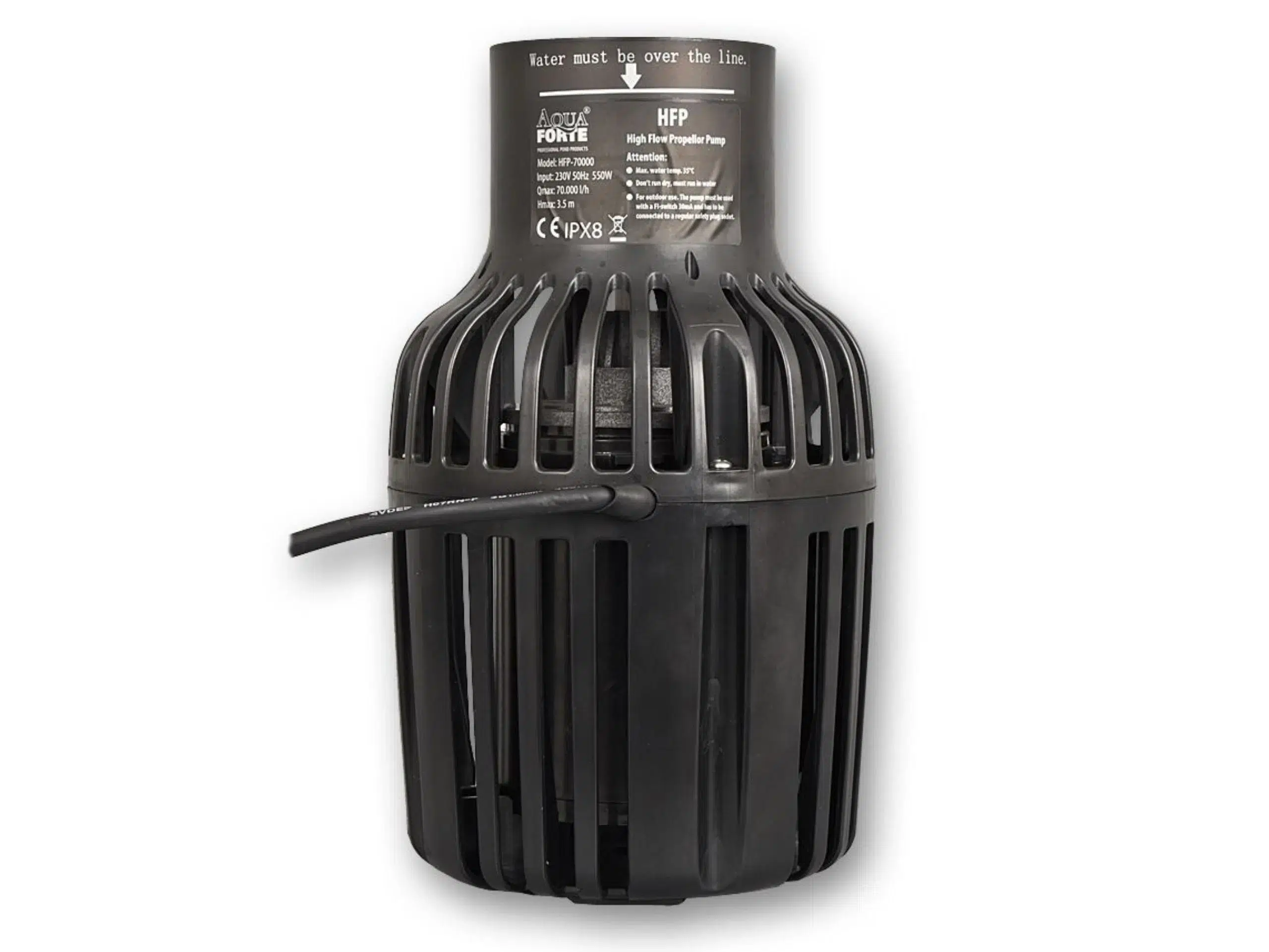 Die AquaForte HFP Propellerpumpe ist besonders förderstark bei einem vergleichsweise geringem Stromverbrauch. Bei Bedarf kann der Stromverbrauch und die Leistung der Pumpe mit einem Regler geregelt werden.