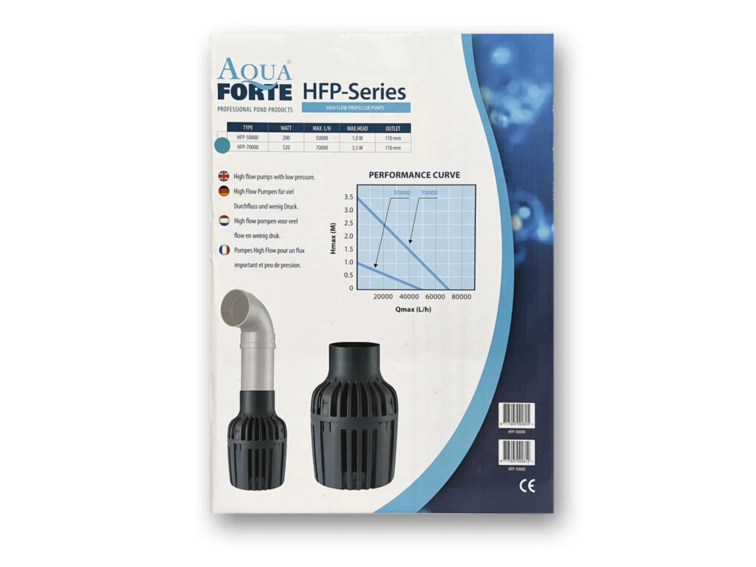 | AquaForte HFP-70000 | 550 | 70.000 | 3,0 | Korb | Ø 110mm | 230 x 320 | Ja | 6 mm |