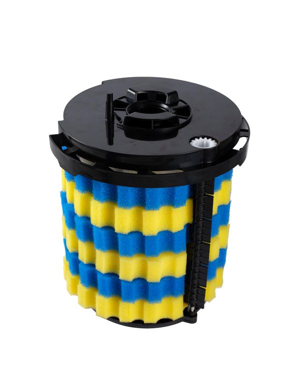 Die Reinigungswelle im Filter dreht sich und entfernt die großen Schmutzpartikel, die an den Filterschwämmen haften. Zudem wird die Durchflussrichtung umgekehrt, damit auch der feine Dreck nach außen gespült wird.