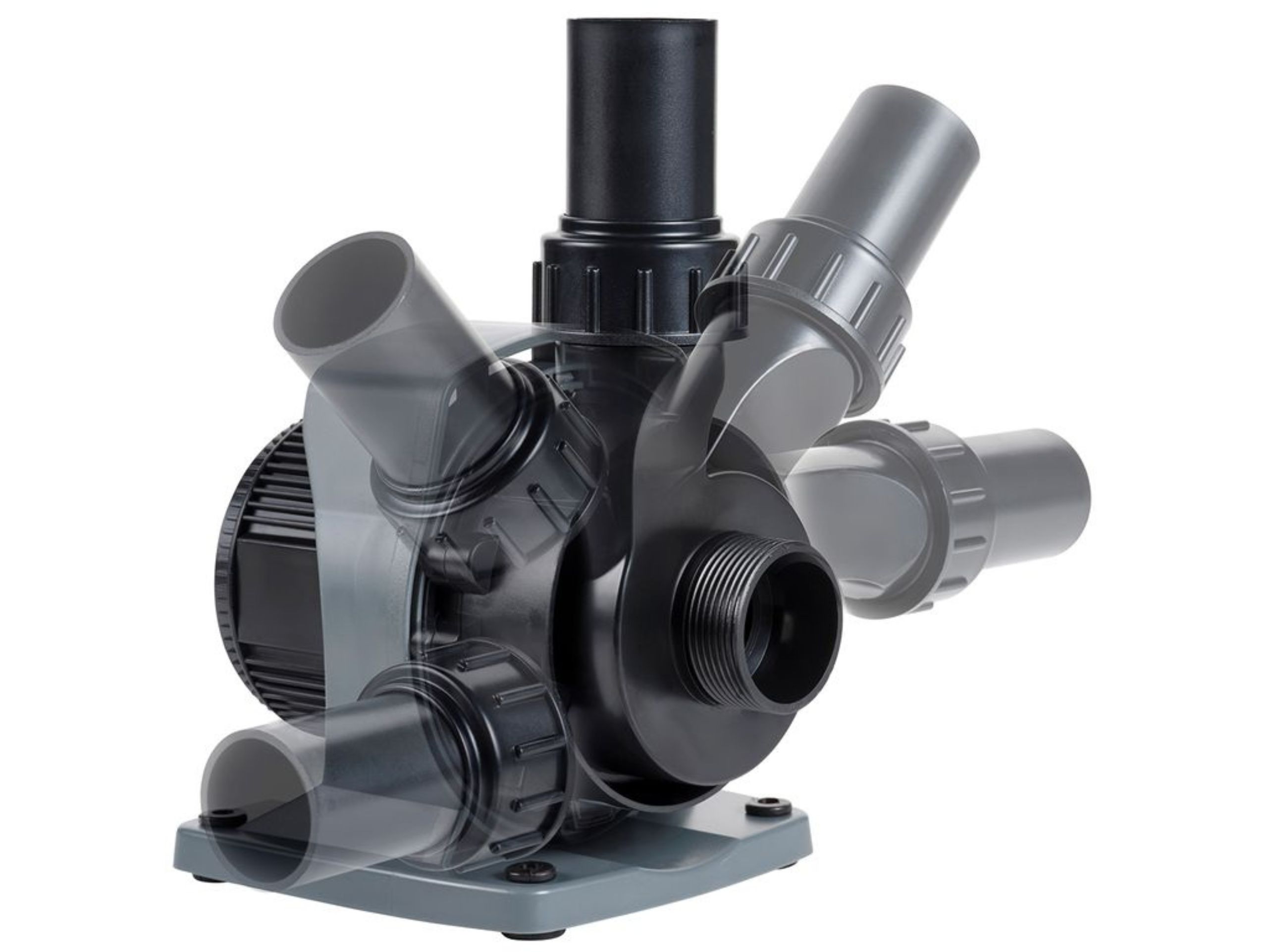 Durch den verstellbaren Pumpenkopf mit den Anschlussmöglichkeiten: Gewinde, Klebestutzen mit Überwurfmutter oder Stufen-Schlauchtülle ist die Pumpe vielseitig und einfach zu installieren.