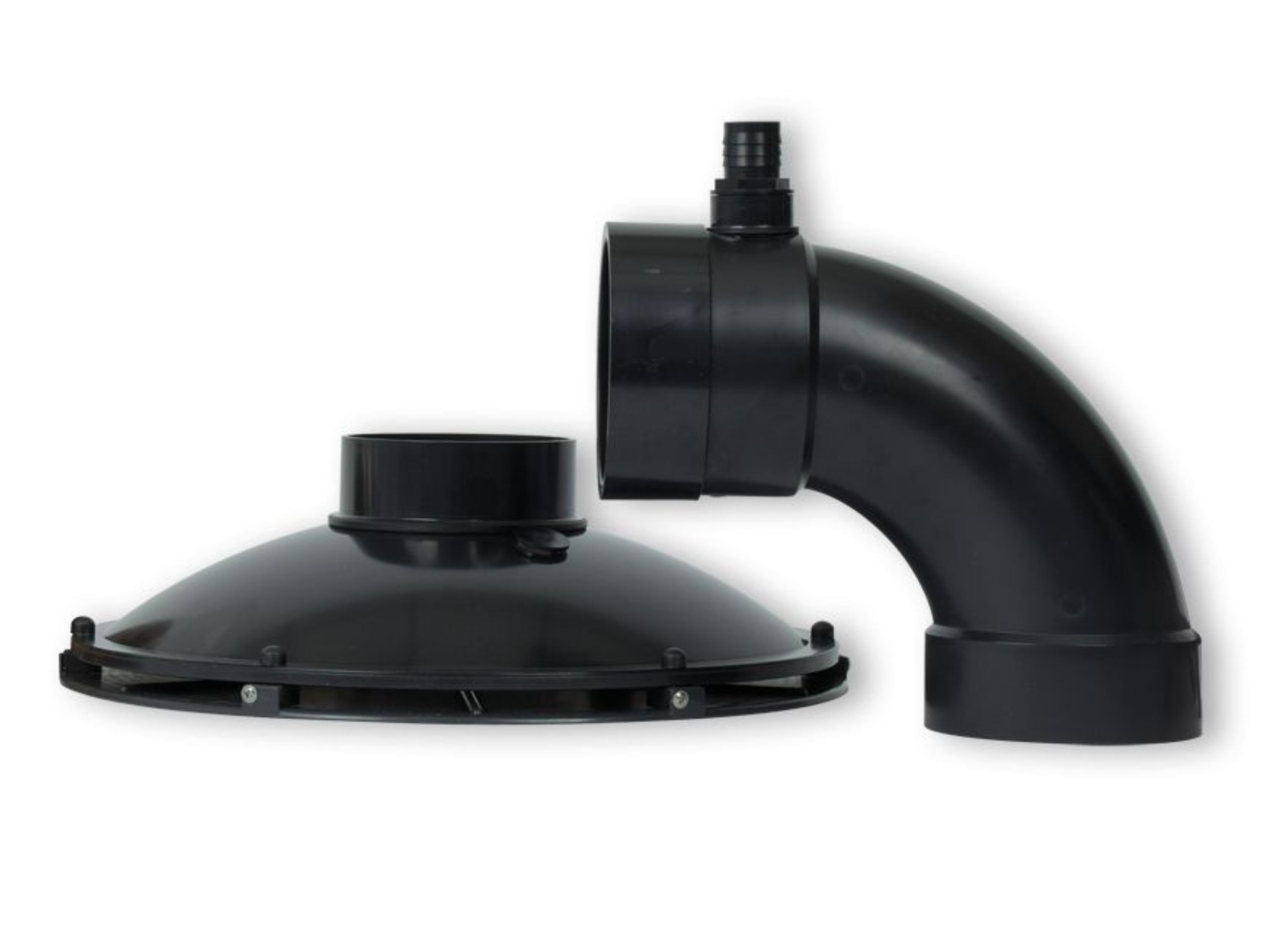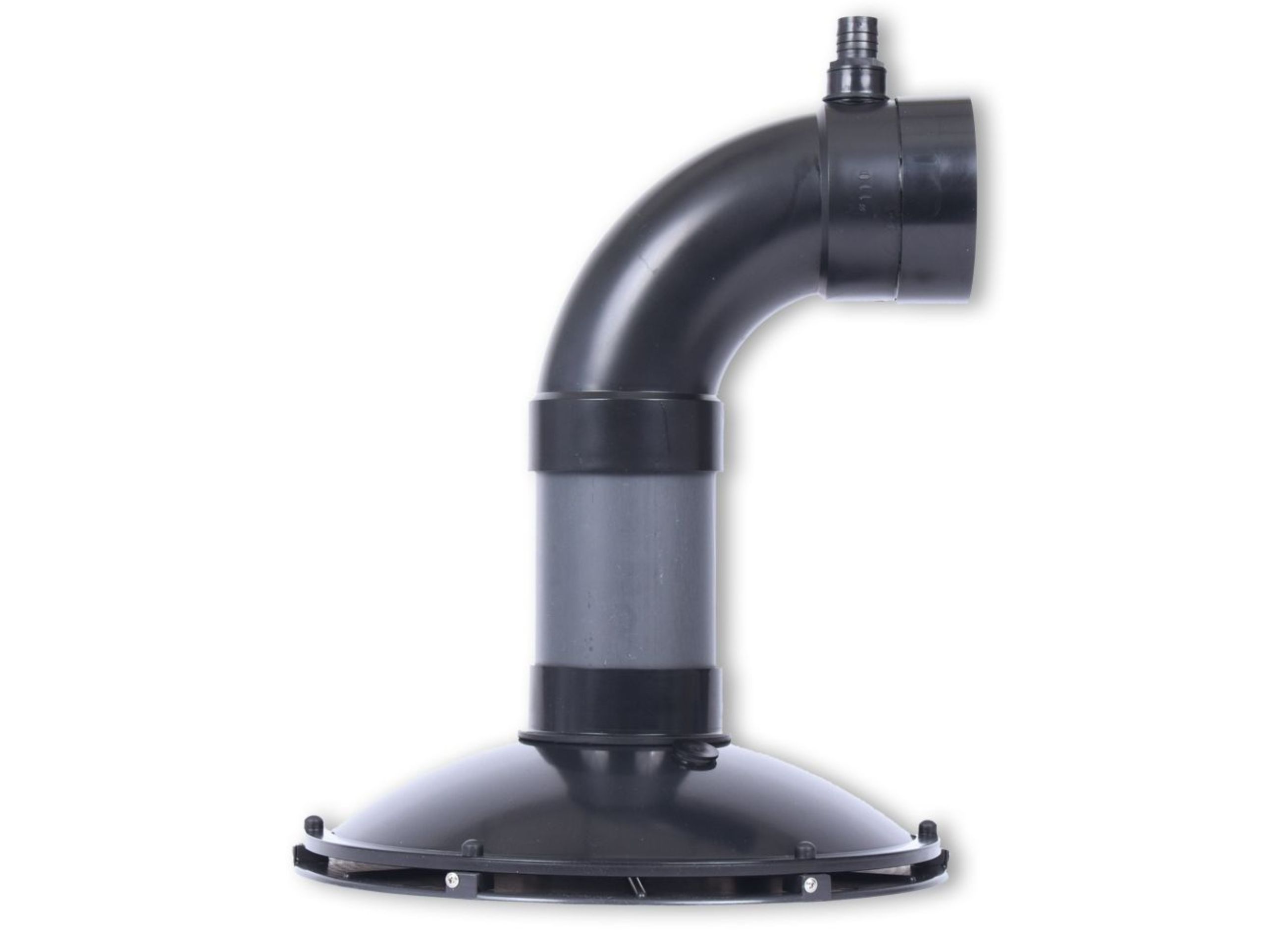 - 25mm Schlauch oder 32mm Rohr an den Seitenabgang anschließen und an die Oberfläche des Teiches führen, um ein Vakuum zu verhindern