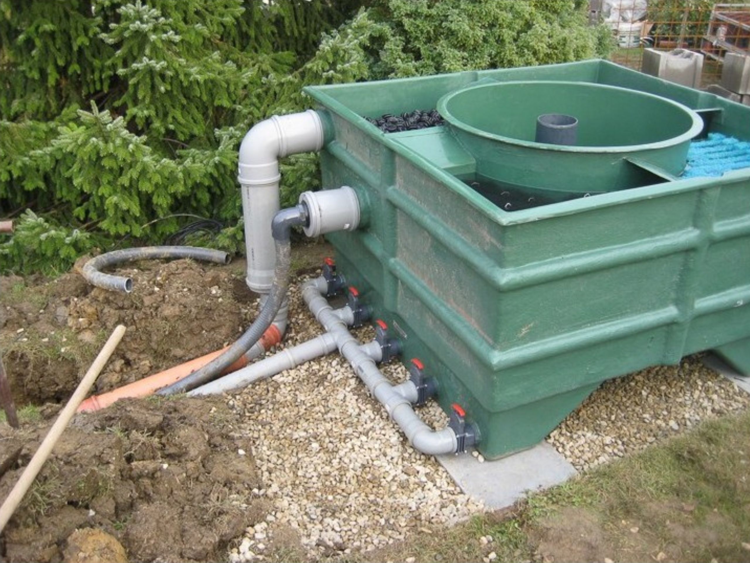 Das Teichwasser wird in den letzten 3 Kammern biologisch aufbereitet und von giftigen Stickstoffbindungen, wie Ammonium und Nitrit befreit. Durch die unterschiedlichen Filtermedien können sich auch verschiedenste Bakterienstämme ansiedeln. Nach der letzten Kammer wird das Wasser über ein 160mm Rohr wieder zurück in den Teich befördert.