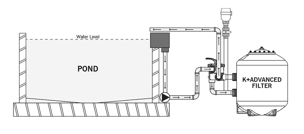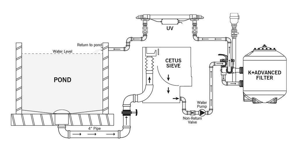 Dem K+ Advanced Filter sollte immer ein Cetus Bogensieb vor und ein UV-Klärgerät nachgeschaltet werden.