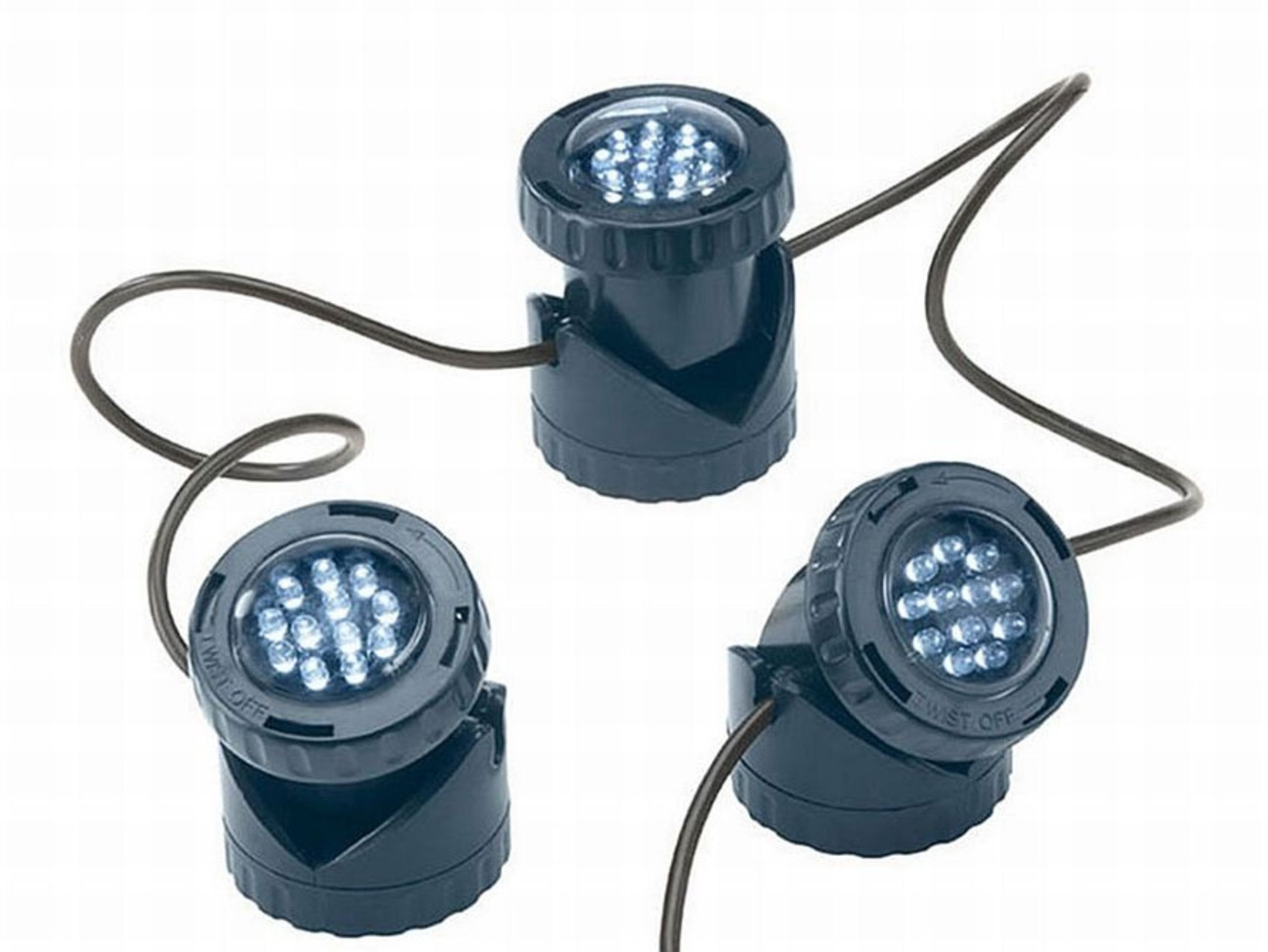 Das Set kann bis zu einem 1 Meter unter Wasser installiert werden. Die Kabellänge zwischen den Leuchten beträgt 5 m.