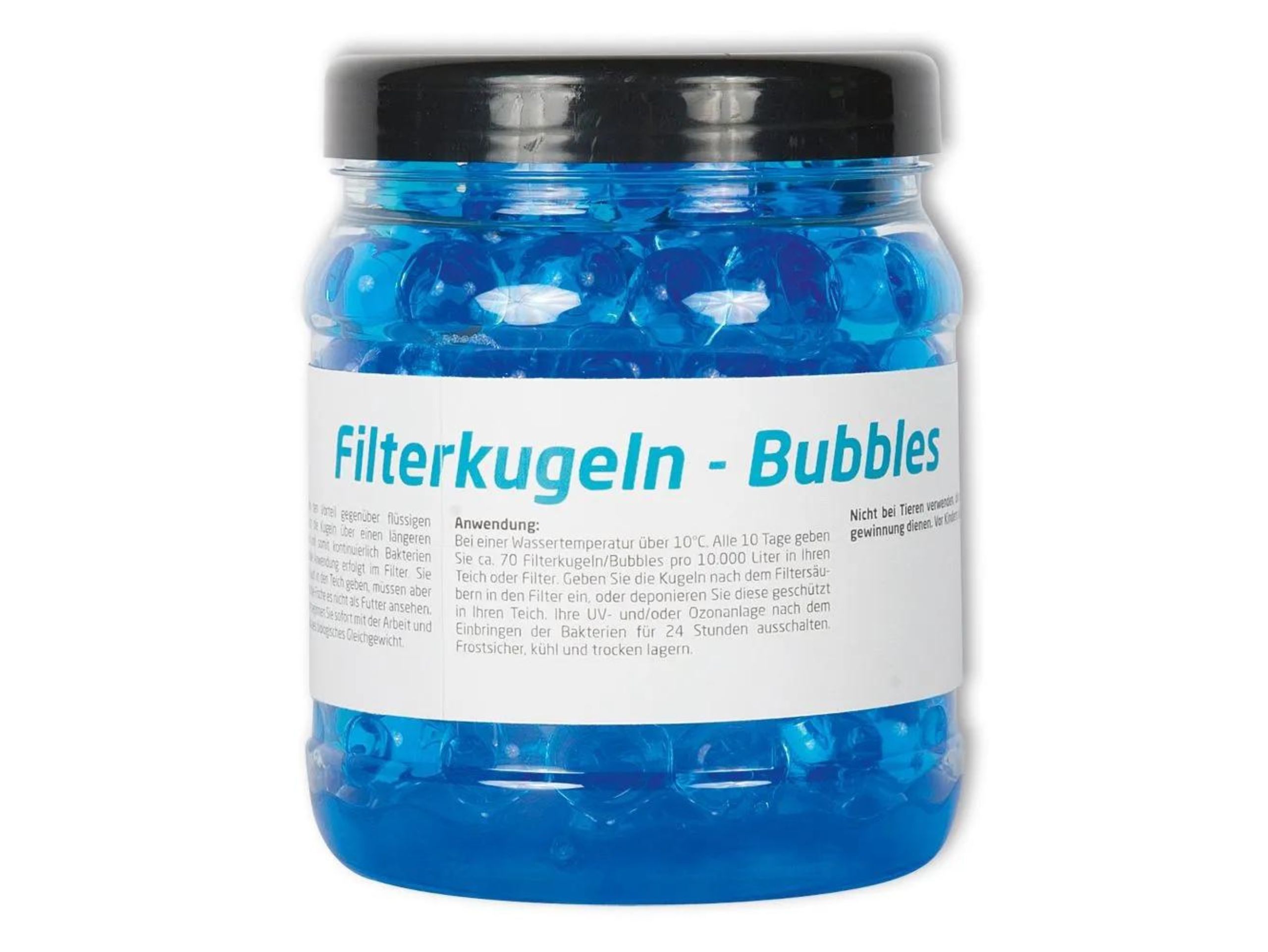 1000 ml enthalten ab sofort über 300 Bubbles. Wir konnten die Festigkeit der Kugeln erhöhen, dadurch können sie länger aufbewahrt werden. Die dickflüssigen Bakterien direkt auf das Filtermaterial aufbringen. Im Mehrkammerfilter in die vorletzte Kammer geben. Sie haften dadurch am Material und können sich dadurch bestens entfalten. Nach dem Auftragen für gute Belüftung sorgen. Bei einem Beadfilter unter das Sieb des Vorfilters geben.