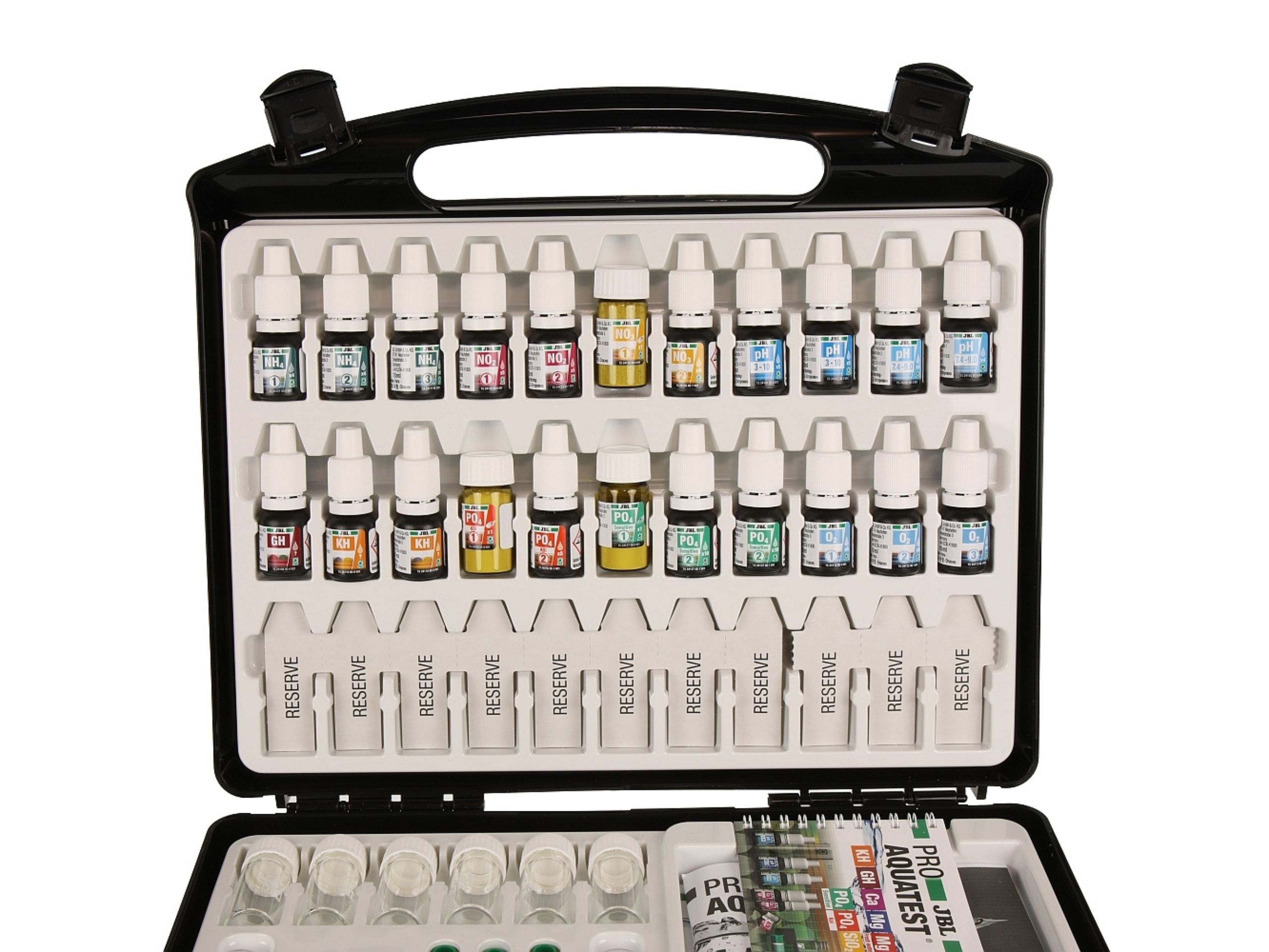 Der JBL Testkoffer kann zur Ermittlung von 11 verschiedenen Wasserwerten genutzt werden. Die Anwendung der Test ist sehr einfach und kann durch die beiliegende Farbskala ohne Verwechslungsgefahr abgelesen werden.
