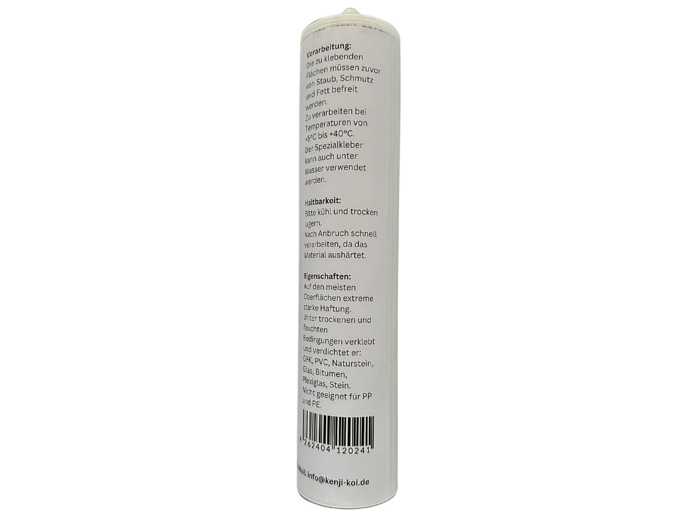 Sie suchen einen Kleber mit extrem guter Haftung welcher auf unter Wasser klebt? Unser KENJI KOI Spezial Kleber ist ein Einkomponentenkleber welcher nahezu auf allen Materialien und Untergründen zuverlässig abdichtet. Der KENJI KOI Spezial Kleber ist speziell für Teiche und Aquarien entwickelt und komplett unschädlich für Ihre Fische. Der Kleber ist Silikon- und Lösungsmittelfrei, dazu Geruchsneutral.