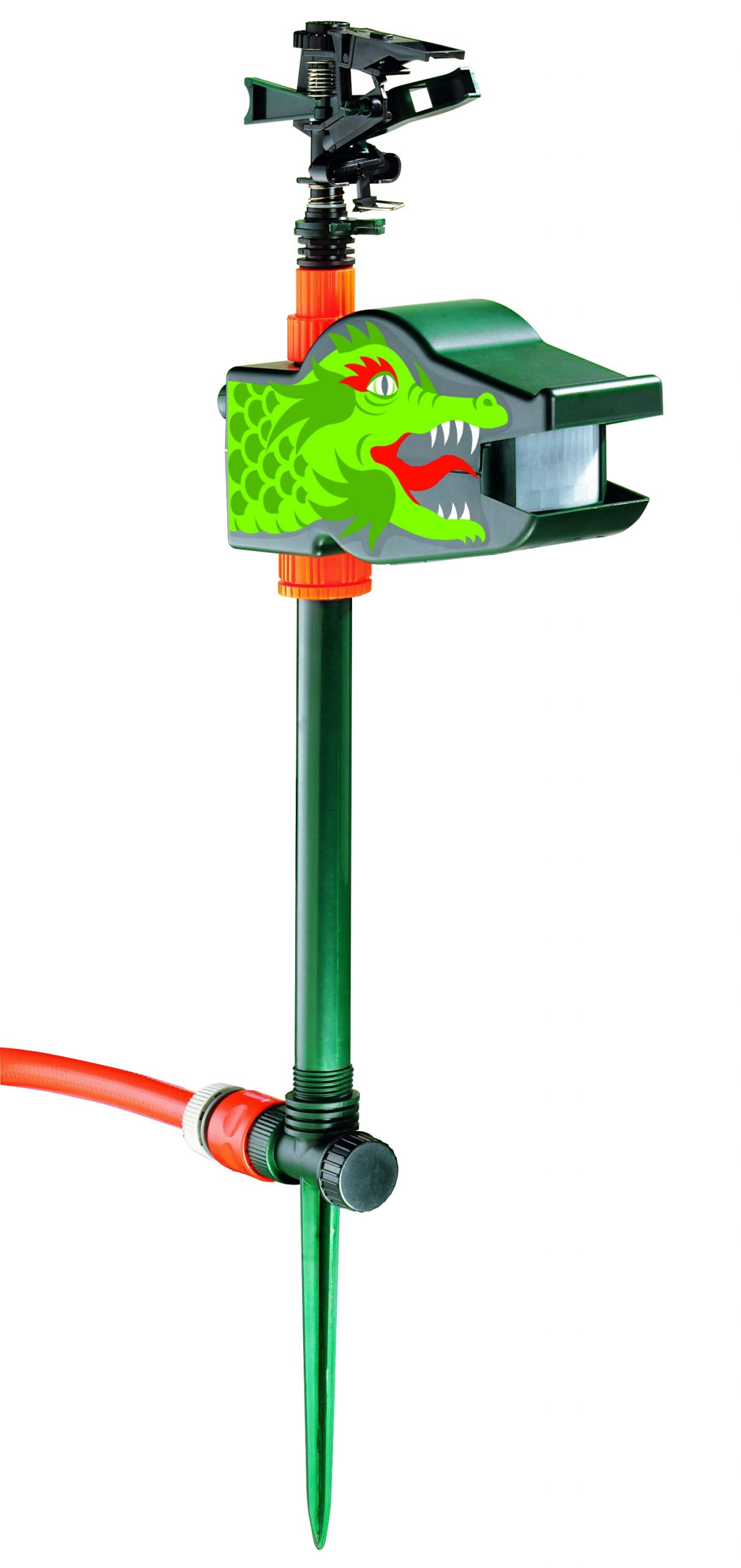 Die Installation des Reiherschrecks ist ganz simpel. Sie brauchen eine geeigent Stelle, stecken den Reiherschreck dort in den Boden und schließen ihn an einen Gartenschlauch an.
