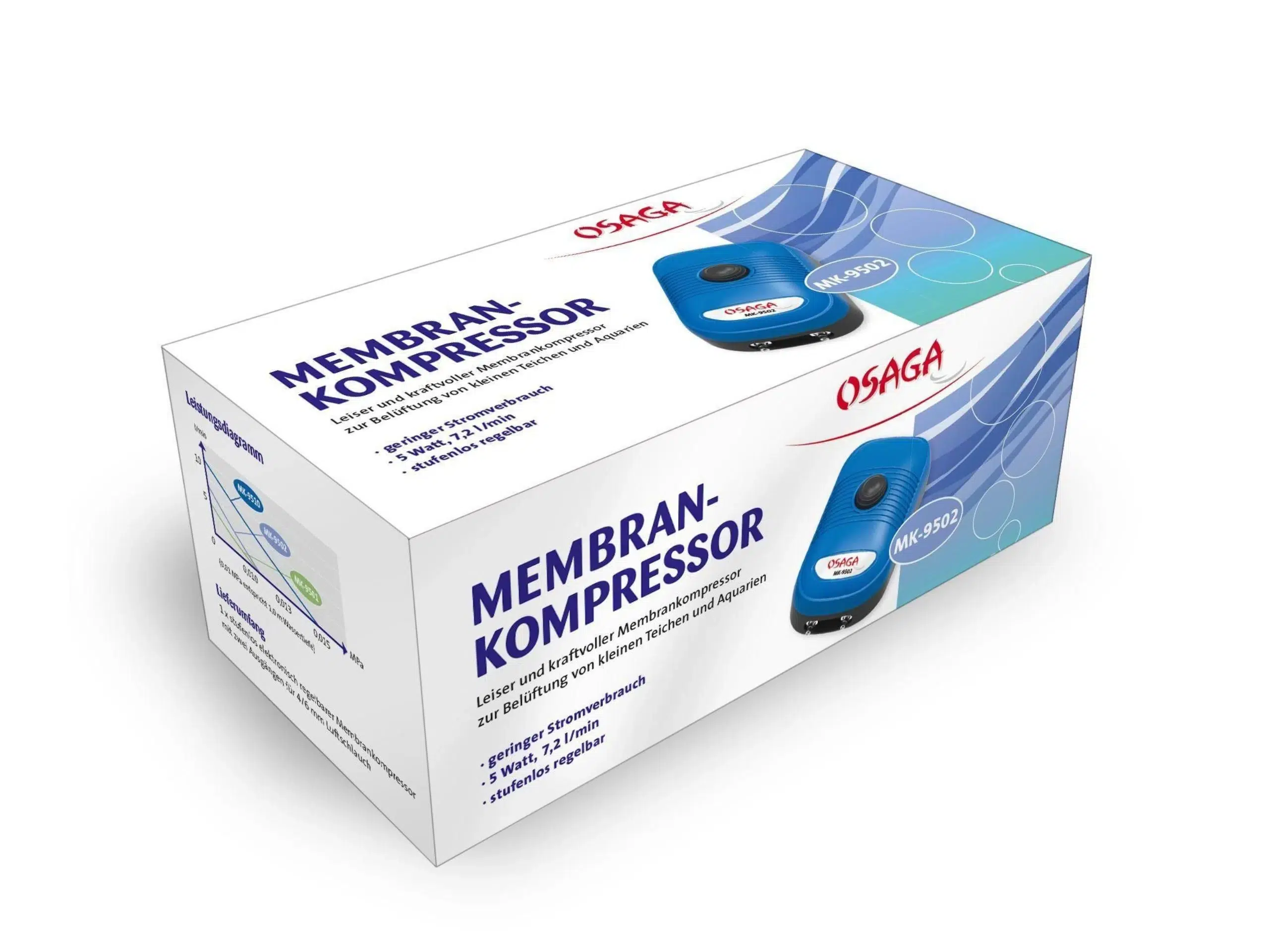 Der Osaga regelbare Membrankompressor sind besonders leise und kraftvoll zu gleich. Optimal zur Belüftung von Aquarien und kleinen Teichen.
