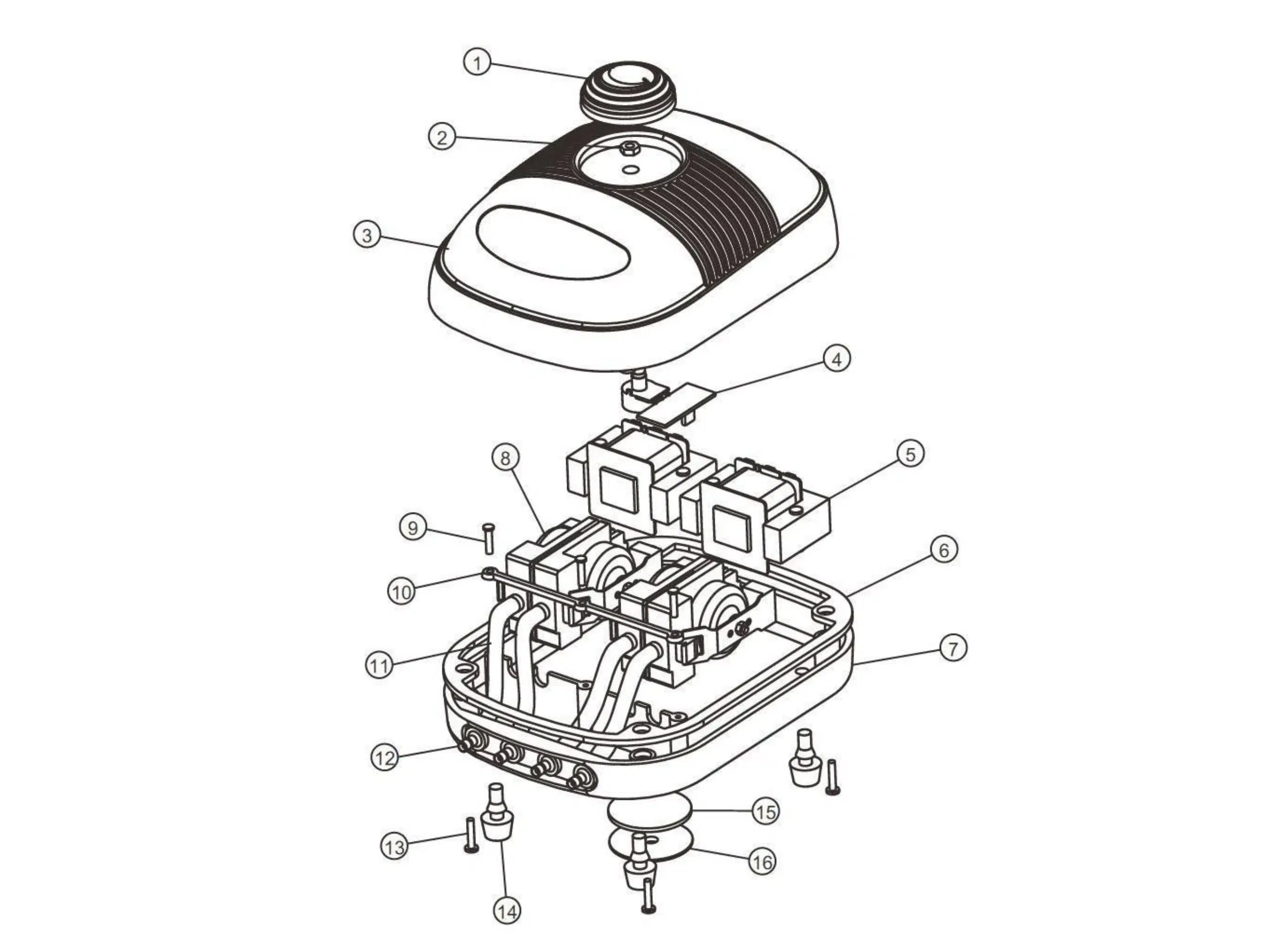 Der regelbare Membrankompressor schaltet sich ein und aus sobald der Stecker ein- oder ausgesteckt wird. Der Belüfter darf während des Betriebs nicht zu heiß werden, da es sonst zu einem hohen Verschleiß an Motor oder auch Membranen kommen kann.
