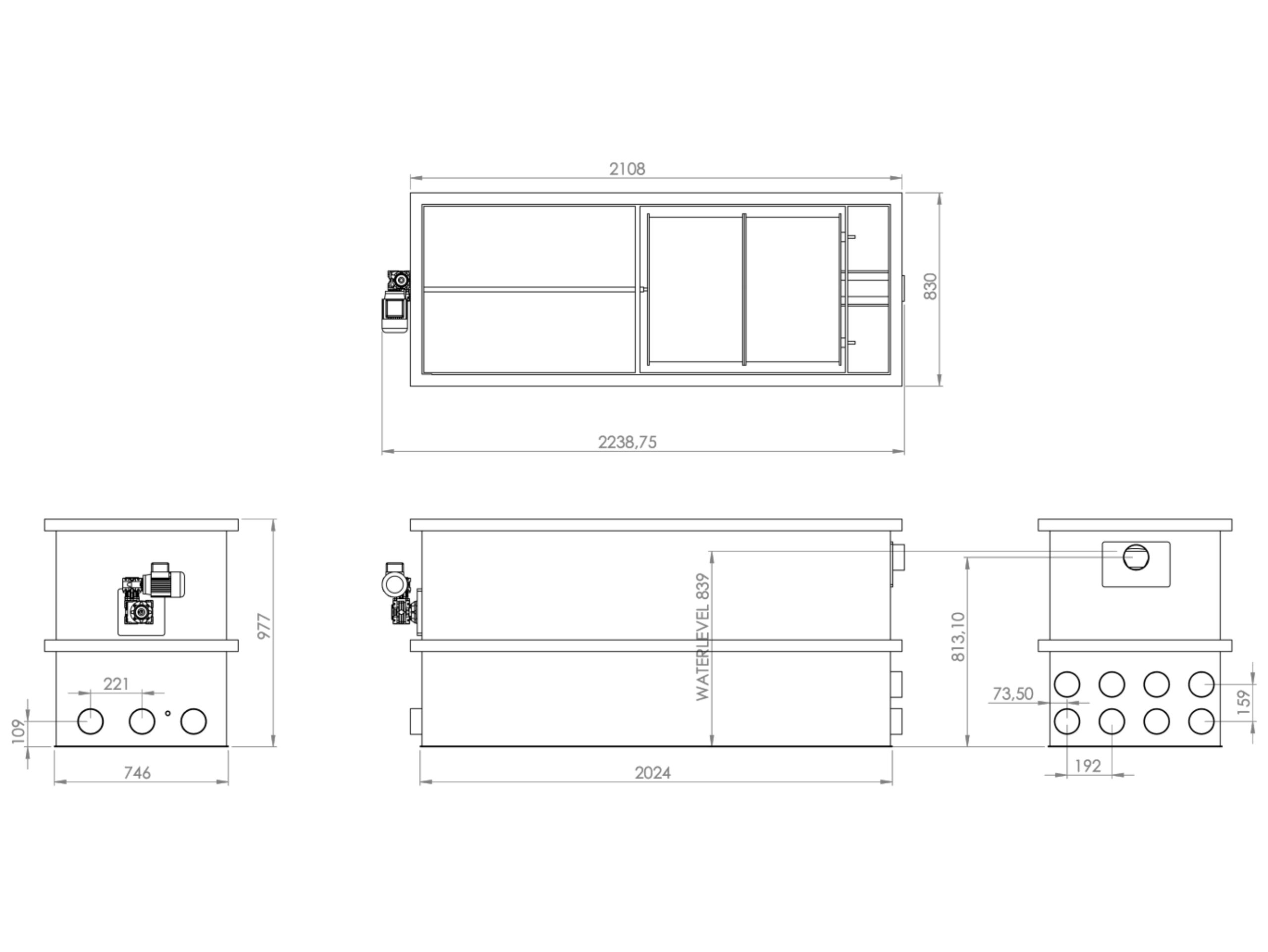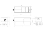 Der Filter verfügt über 8 Einläufe, 3 Abläufe und einem Schmutzablauf. Die Anschlüsse haben einen Durchmesser von 110mm, wodurch ein ausreichender Durchfluss gewährleistet wird.