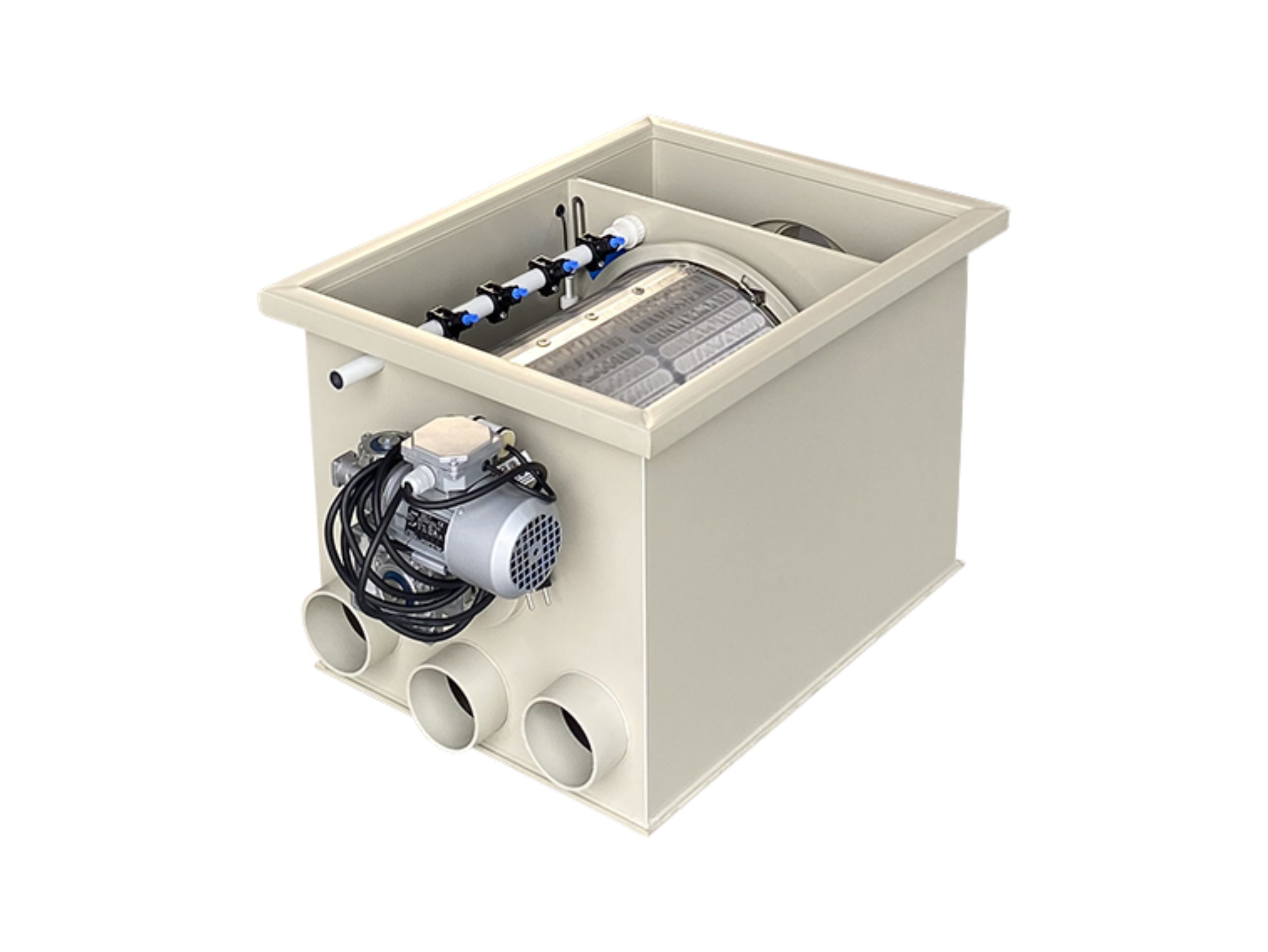 Im Lieferumfang enthalten sind: Super Drum M, Deckel, Spülpumpe und Steuerelektronik.