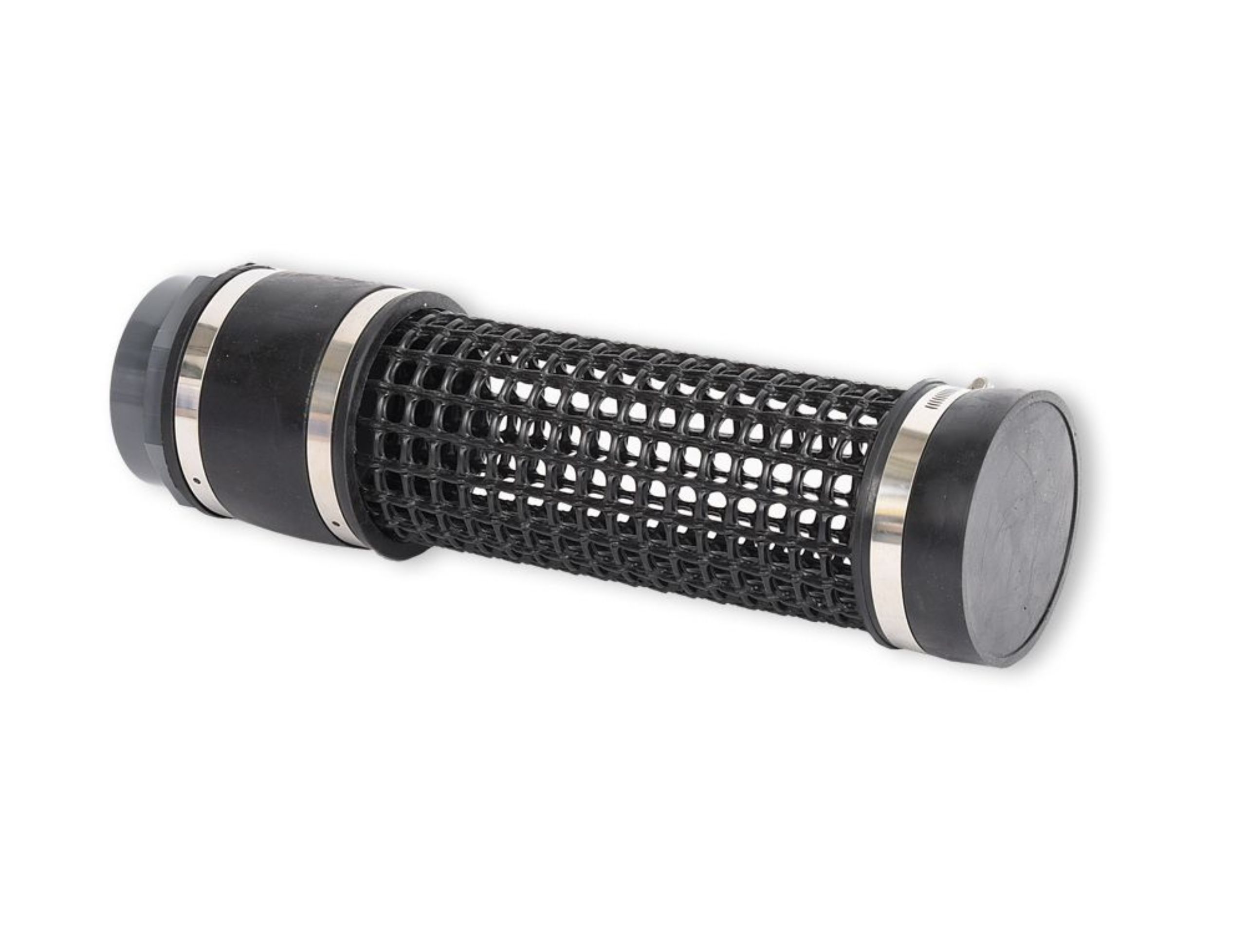 Auf Grund der Lochgröße von 10 – 12 mm kann das Filtersiebrohr nicht verstopfen und bietet ausreichende Sicherheit, damit die nachstehende Pumpe nicht trockenläuft.