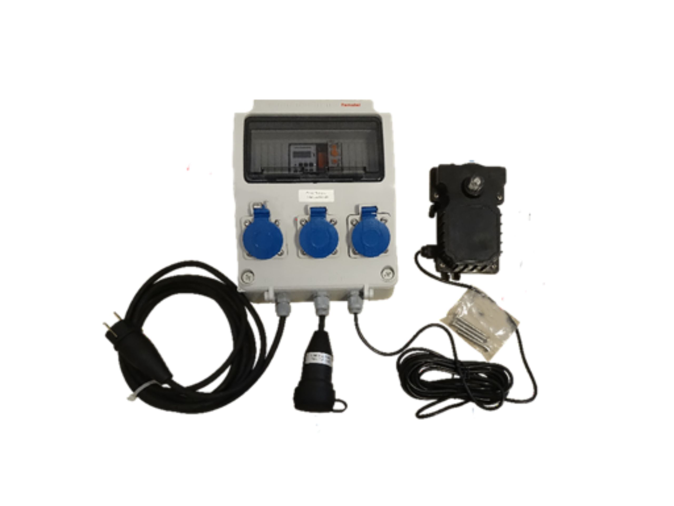 Das Set verfügt über 2x 220 Volt Steckanschlüsse. Die Systempumpe wird so an die Automatik angeschlossen, dass die Pumpe während der Spülung stoppt. Um das Schmutzwasser zu entfernen kann eine Pumpe angeschlossen werden, die das Wasser dann zum Beispiel direkt in die Kanalisation pumpt.