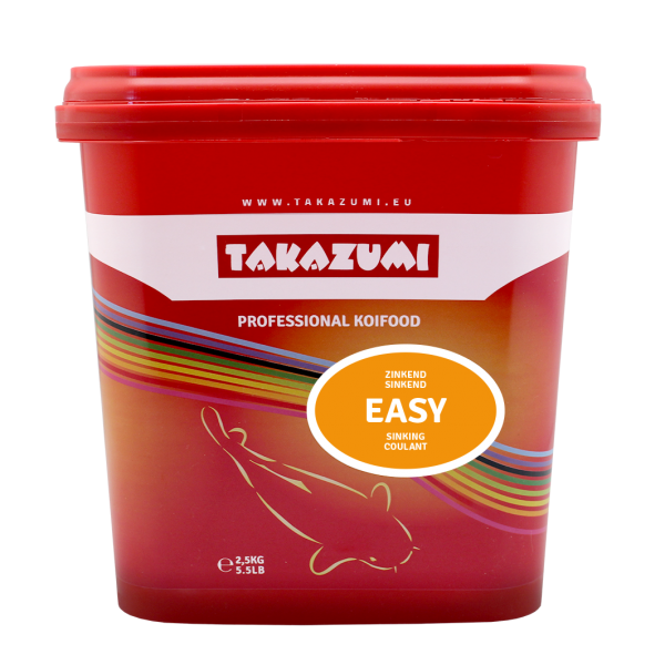 Takazumi Easy ist ein sinkendes Futter, es ist für den weniger aktiven (Easy)Koi bestimmt, der sich der Jagd der neu eingestreuten Futterpeletts entzieht und tiefer im Teich abwartet, was ihm zufällt. Es enthält alle Nährstoffe für ein langes und gesundes Koileben.