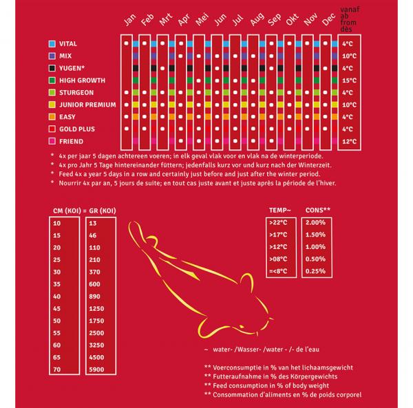 Es kann in jeder Jahreszeit gefüttert werden. Wegen der sinkenden Charakteristik ist Takazumi Easy auch ein hervorragendes Winterfutter.