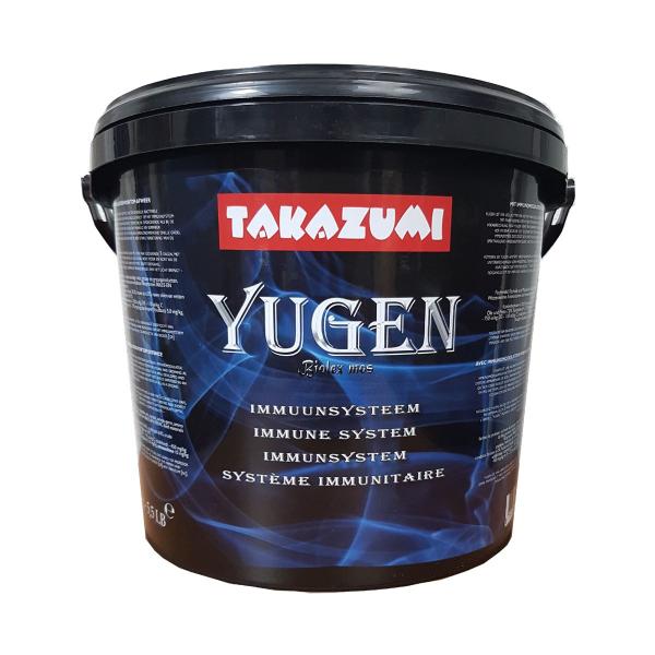 Takazumi Yugen ist ein Vollfutter für Koi mit hinzugefügter bakterieller Immunomodulator mit einer beispiellosen positiven Wirkung auf das Immunsystem der Koi. Die Verabreichung von Yugen führt bei heranwachsenden sowie bei ausgewachsenen Koi in sehr kurzer Zeit zu einem gut entwickelten und funktionstüchtigen Immunsystem. Dies zeigt sich durch ein erstaunlich schnelles Wachstum, eine spektakuläre Farbenentwicklung und vor allem durch eine starke Aufbesserung der natürliche Abwehrkräfte.