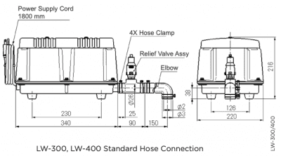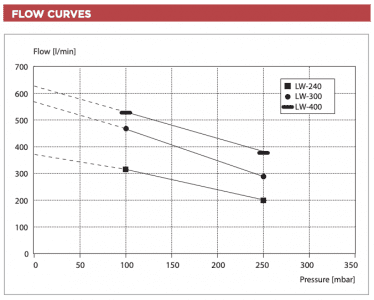 Der LW-400 liefert 425 Liter pro Minute bei einem Arbeitsdruck von 2 Metern Tiefe.